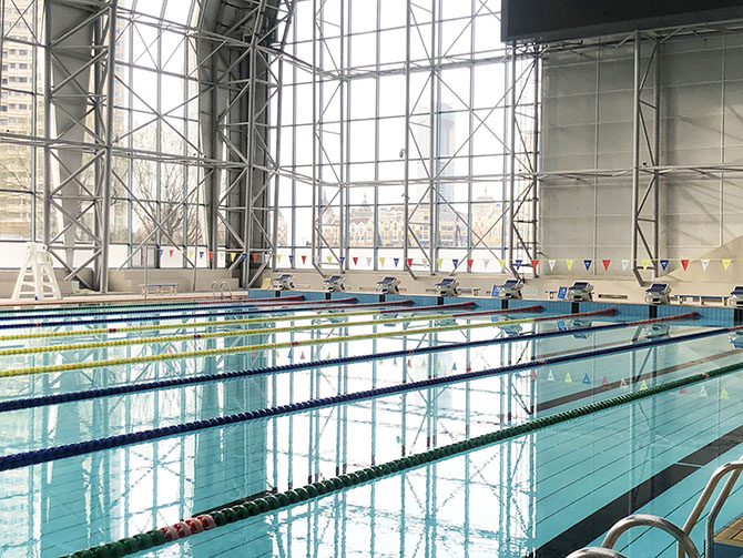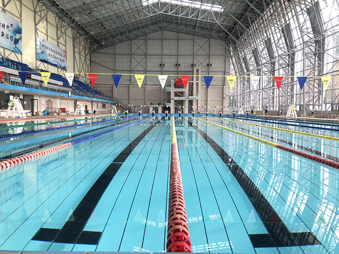 ·室内比赛池:长50m X宽25m 10条泳道 水深2m