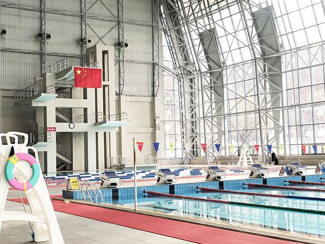 ·室内训练池:长25mX宽21m 8条泳道 水深1.6m